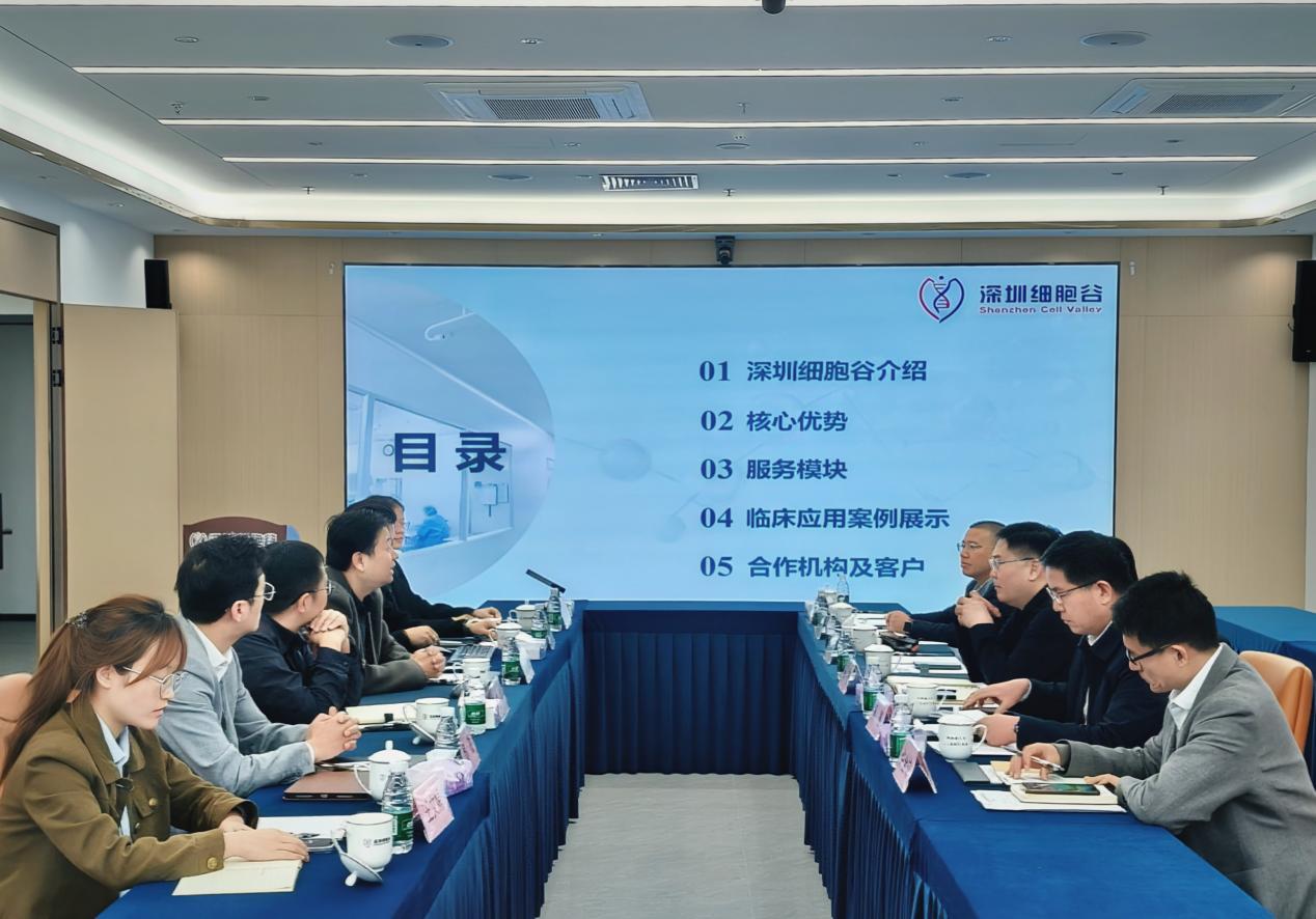 A delegation led by Chief President Zhang Fei from the Shenzhen Nanshan Medical Group Headquarters visited Shenzhen Cell Valley to explore new opportunities in the development of cell therapy industr