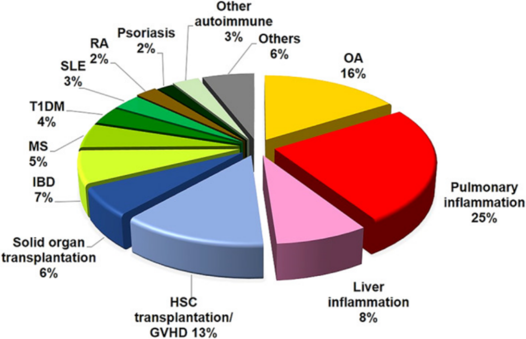 △现在间充质干细胞疗法临床试验中的免疫和炎症疾病适应症